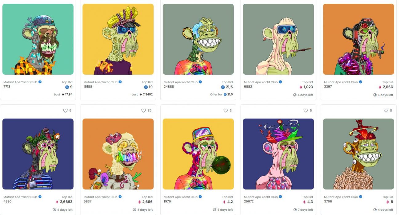 Plus de 10 000 Mutant Apes ont été récemment proposés au public, à travers un système d’enchère inversée hollandaise. Les NFTs étaient ainsi vendus à un tarif qui était progressivement abaissé jusqu’à trouver un acquéreur. Ainsi, le prix de « minting » avait démarré à 3 ETH, avant de baisser au fil des minutes jusqu’à 0,01 ETH sur une période de 9 heures.